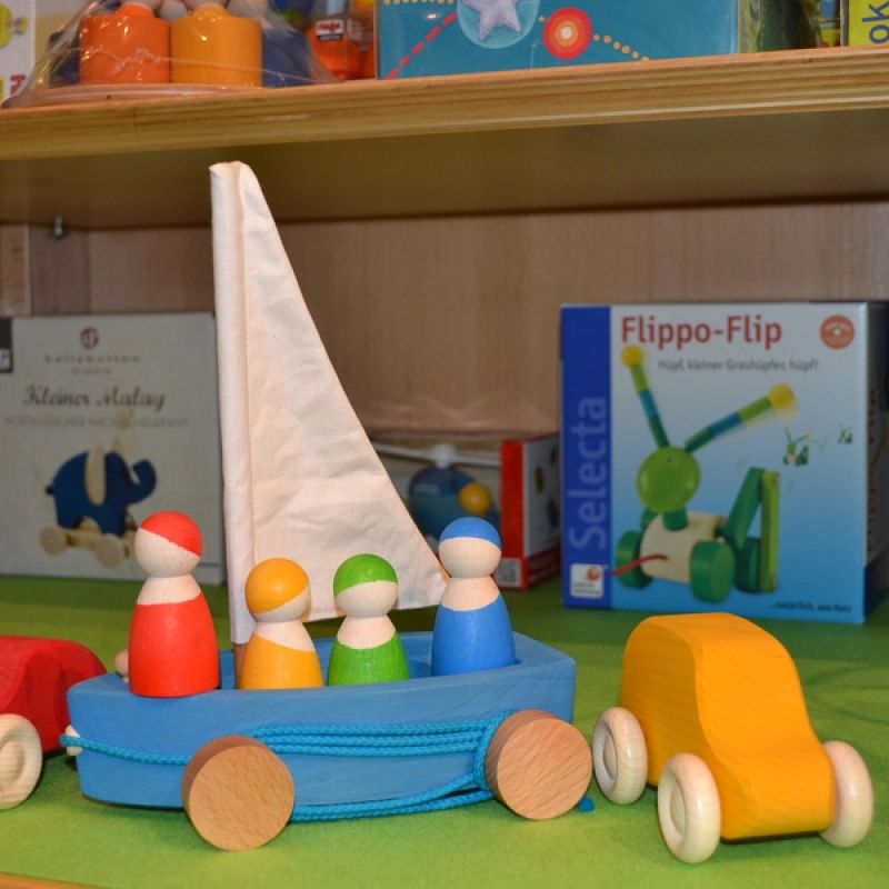 In der Spielerei Schwabach gibt es richtig gutes Spielzeug und liebevolle Geschenke: Babys erste Begleiter zum Schmusen, Greifen und Staunen, Puppen zum Liebhaben und Schönmachen, Prinzessinnen & Ritter, Elfen & Piraten, Verkleidungen und Kaufmannsladen, Outdoor-Spielzeug, ein großes Sortiment an Holzspielzeugen, eine Bücherecke zum Schmökern und Träumen, Kinderzimmerdeko und tausend andere kleine Schätze. Malen, Basteln, Handwerkeln, draußen Spielen und knifflige Aufgaben lösen - all das geht hier spielend leicht.